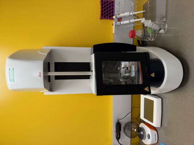 The Leica GP2 cryo grid sample prep robot plunge freezes fluid or extremely thin samples spread on an electron microscopy grid into liquid ethane after removing excess fluid by automatic blotting. Prior to freezing, the sample is maintained in a temperature and humidity controlled environmental chamber, adjustable between +4°C and +60°C and room humidity of up to 99%.